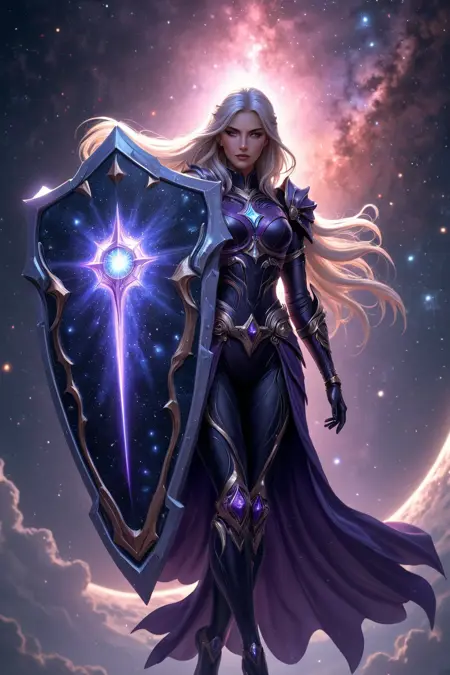 Pony 예시 프롬프트: "score_9, score_8_up, score_7_up, upscale 2x, (세계관: 월드 오브 워크래프트에서 나온 강력하고 우아한 나이트 엘프 전사의 영화 같은 전신 묘사. 복잡하게 디자인된 보라색 방패를 휘두르고 있다. 방패는 마법적인 에너지로 반짝이며, 은색 세공으로 된 달과 흐르는 덩굴 무늬가 장식되어 있으며, 나이트 엘프의 신비로운 유산을 반영한다. 방패 가장자리는 날카롭게 연마된 은으로 강화되었고, 중앙 문양은 미묘하게 빛나며, 엘룬의 상징이 신비로운 부드러운 보라빛으로 둘러싸여 있다. 나이트 엘프 자신의 피부는 매끄럽고 깊은 보라색이며, 주변 마법의 빛 아래 희미하게 빛난다. 그녀의 얼굴은 강렬하면서도 우아하며, 어깨를 넘어 흐르는 긴 은색 머리카락으로 둘러싸여 있다. 빛나는 흰색 눈은 지혜와 강렬함을 발산하며, 뾰족한 귀는 그녀의 초자연적인 아름다움을 더한다. 그녀는 전통적인 나이트 엘프 갑옷을 입고 있으며, 가죽과 반짝이는 은판으로 구성되고, 보라색과 청록색 무늬가 조화롭게 배치되어 신비로운 환경과 완벽히 어우러진다. 그녀는 숙련된 자신감으로 방패를 들고 있으며, 정밀하게 방어하고 공격할 준비를 마쳤다. 배경은 잊혀진 숲의 심장부에 위치한 고대의 마법적 폐허이다. 무너진 석조 아치는 빛나는 덩굴과 푸른 빛을 내는 버섯으로 덮여 있으며, 마법의 상징들이 희미하게 흐느끼는 바위 벽에 떠 있다. 달빛이 수목의 틈을 통해 비춰, 고요하면서도 신비로운 빛을 퍼뜨린다. 공기는 마법의 에너지 미립자로 반짝이며, 폐허에 신비로운 분위기를 선사한다. 저각도에서 촬영된 구성은 나이트 엘프의 우아함과 그녀 및 방패에서 흘러나오는 고대의 힘을 강조한다. 이 작품은 생동감 있고 디테일한 판타지 애니메이션 스타일로 표현되었으며, 고해상도 디지털 페인팅 기법으로 장면의 신비롭고 마법적인 세부 사항을 생생하게 포착했다.:1.2)"