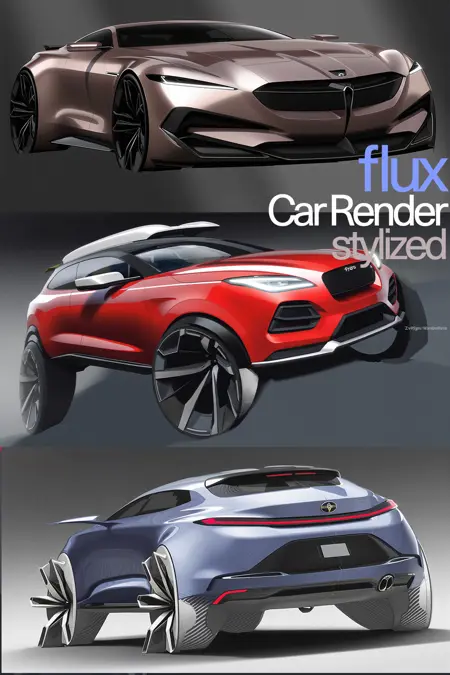 The car render Lora (stylized) has been updated to the Flux.1 version, offering better results, especially in terms of details. It features less distortion, clearer structure, better adherence to the prompt description, and improved rendering quality. Additionally, it supports direct output at around 2K resolution. The trigger words is "car render style." It's recommended to use the recently released Flux official ControlNet: Canny Full Model version for sketch control generation. Have fun! I will also update the neutral version to the Flux version soon.