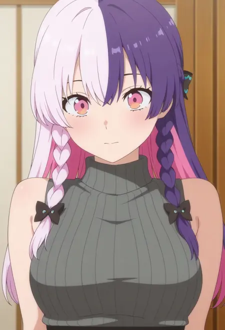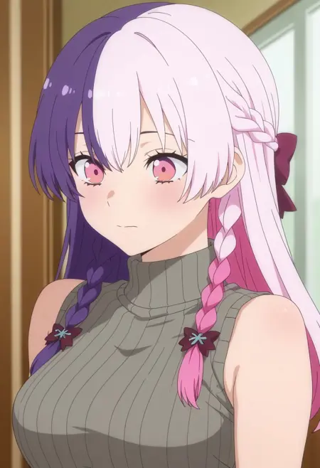 원래 캐릭터: nagomi, 긴 머리, 다색 머리, 분홍색 머리, 보라색 머리, 분홍색 눈, 땋은 머리