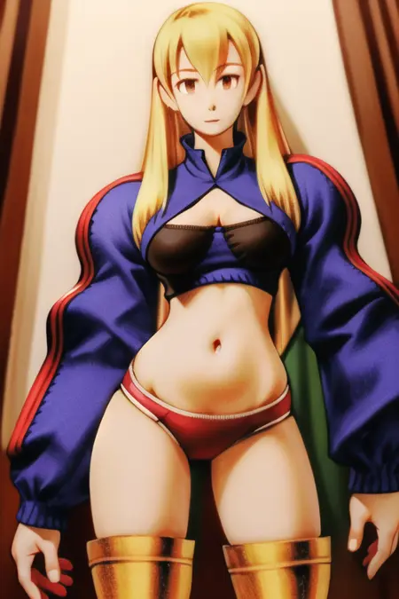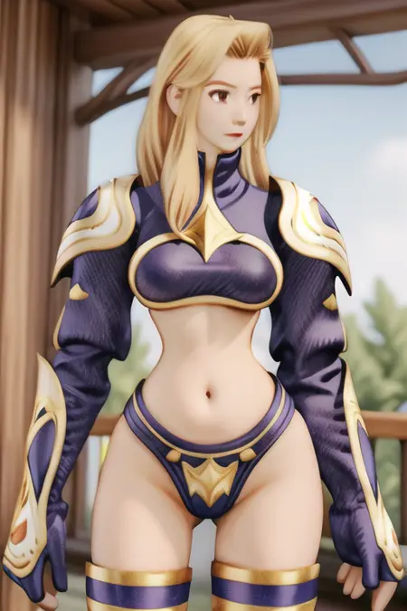 1boy, 1girl, blonde hair, orange hair, light brown hair, braid, ponytail, cowlick, armor, black armor, gold armor, helmet, winged helmet, couter, cuisses, poleyn, greaves, sabaton, gauntets, pauldrons, shoulder armor, hat, bonnet, apron, unitard, leotard, knight, witch, wizard, ninja, samurai, robe, dress, pleated dress, coat, shirt, hakama pants, hooded sweater, tunic, thigh boots, gloves, cape, buckle, ribbon, hair ribbon, sash, loose belt, bow, jewelry, bracelets, scowl, looking to the side, arms at sides, clenched hand, clenched hands, legs apart, holding sword, holding katana, holding cane, bare legs, bare shoulders, cleavage, abs, bald, old man, beardI also manipulated some of the female designs to have exposed breasts so try the following: