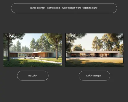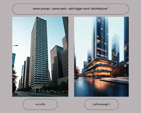 Artchitecture is a LoRA that the creative studio Nire Haus has trained to enhance architectural renders with a unique artistic touch. Designed specifically for Flux.1-dev, this LoRA is perfect for projects that merge contemporary design with painterly aesthetics, creating stunning visuals for competitions, portfolios, or creative exploration.
