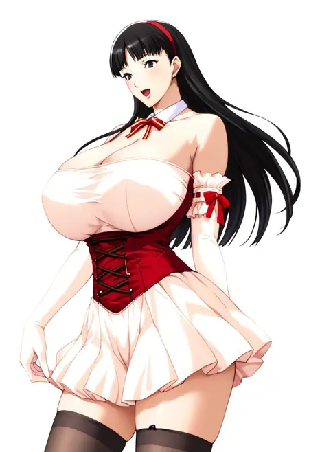 标签:一隅女服务员、过膝袜、裙子、蝴蝶结、露肩、露出胸部、肘部手套、可拆卸衣领、丝带、连衣裙、束腹,