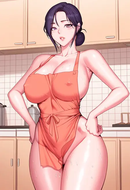 11. ((sexy erotic orange naked apron, huge cleavage, obscene cleavage, ))