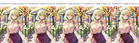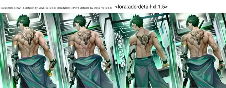 V1.0 - slightly alters image giving more details. Weird interaction that I found - it darkens dark. V-pred NOOB-AI is first SDXL model that I see that can make really dark imagery. ESPECIALLY with short prompts, like 1girl, dark, night. If you are feeling that that is not what you want - just be more descriptive. describe face, vlothes and you won't get those black on black silhouettes anymore. Btw that applies to the NOOBvp1 itself too. See example here: https://civitai.com/images/47951726