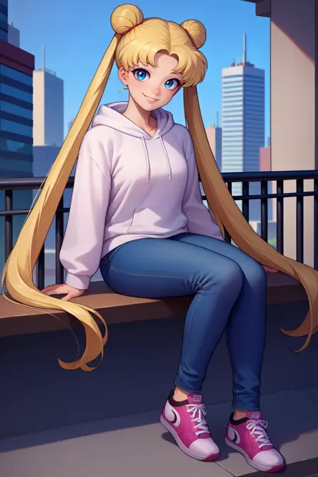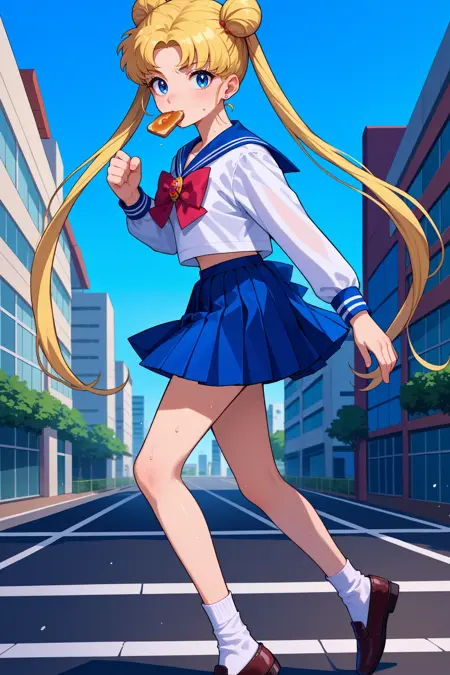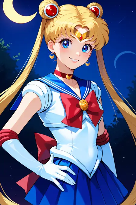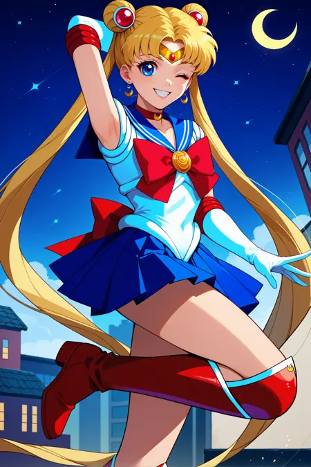 Sailor Moon (or Usagi Tsukino) from Sailor Moon. Trained on Pony Diffusion V6 XL. Tested at 0.8-1.0 strength.