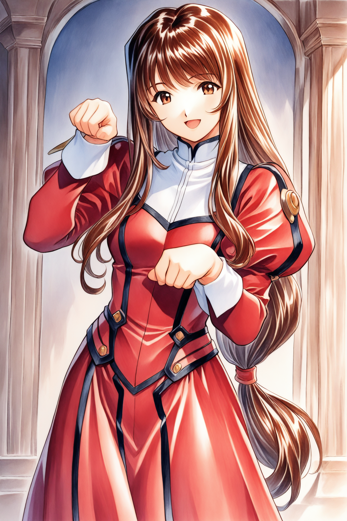 使用提示词:traditional media 可获得藤岛康介 & 松原秀典 手绘原画风格;