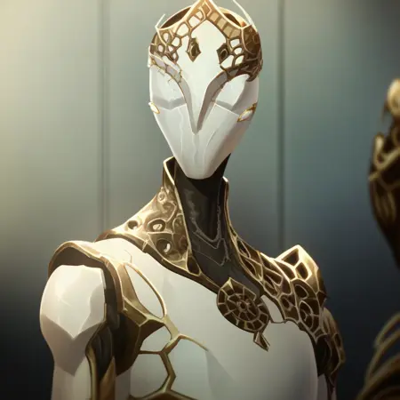 white skin, white colored skin, humanoid robot, science fiction, mask, armor, helmet, joints, robot joints, android,