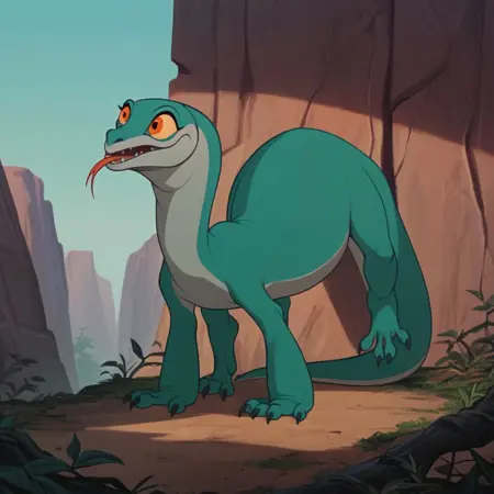 joannardu, feral, female, lizard, green skin, orange eyes, yellow sclera