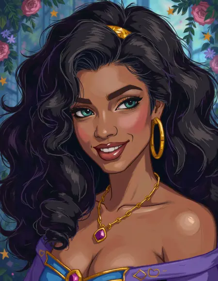 Esmeralda from the 1996 animated classic The Hunchback of Notre Dame. I recommend a strength of 1.2 in general, though there is definitely some flexibility depending on how accurate you want her costume, etc. Both the 32dim and 64dim versions provide a good likeness.