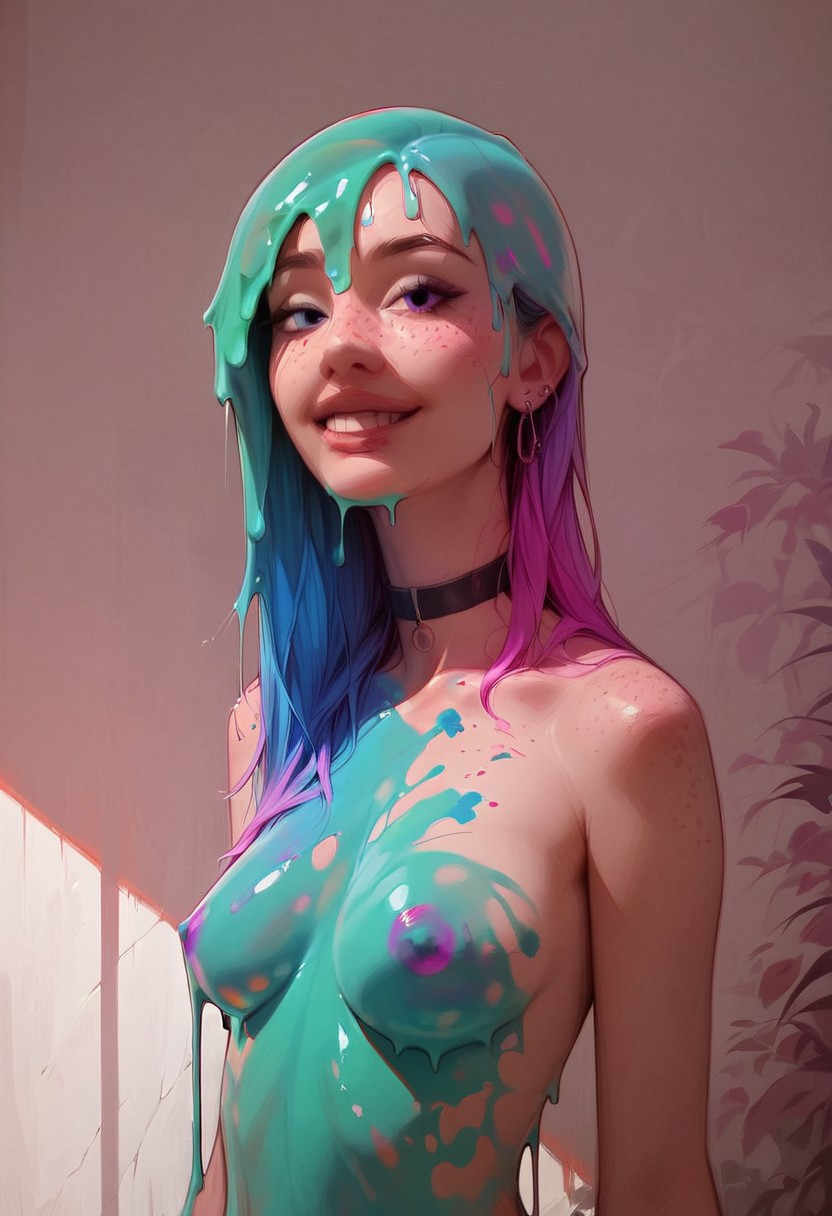 キーワード「GreenSlime」を使って、女の子を緑のスライムで覆ってください!