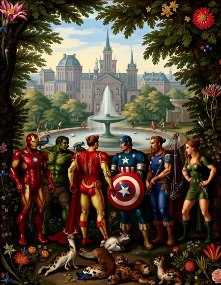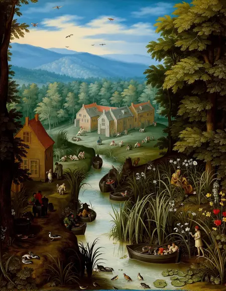 他拥有非凡的能力,能够细腻呈现植物、动物及各种纹理的复杂细节,创造出繁茂而生动的视觉叙事。勃鲁盖尔运用鲜艳的色彩和精致的笔触,为画作注入了生命感与动态感。