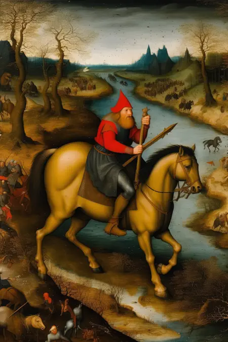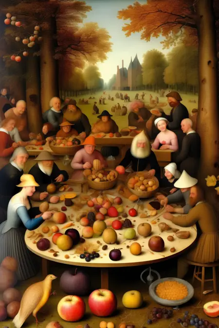 他的风格以高度细致、严谨著称,尤其擅长描绘风景、静物和寓言场景。勃鲁盖尔的作品常展现出自然元素与富有想象力的构图之间的和谐统一。