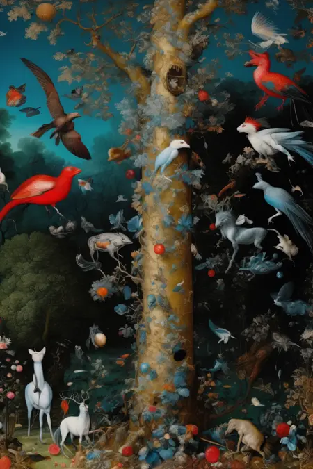 他拥有非凡的能力,能够细腻呈现植物、动物及各种纹理的复杂细节,创造出繁茂而生动的视觉叙事。勃鲁盖尔运用鲜艳的色彩和精致的笔触,为画作注入了生命感与动态感。