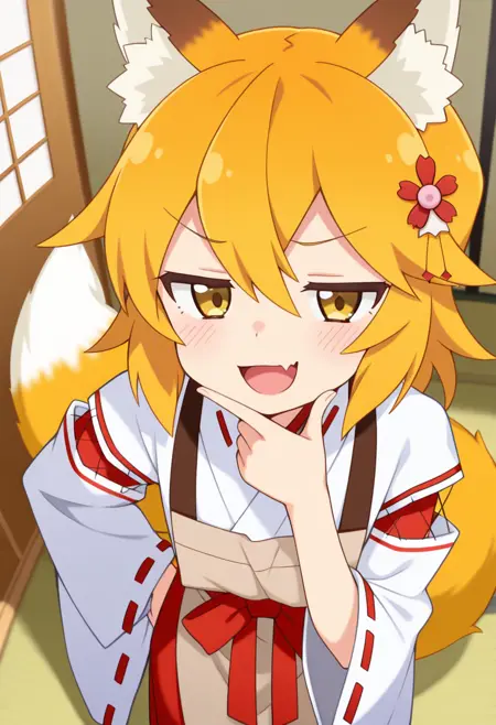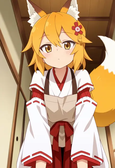 트리거 단어: ct_s3nko, 단발, 금발, 노란 눈, 여우 귀, 여우 꼬리, 머리 꽃, 꼬리,