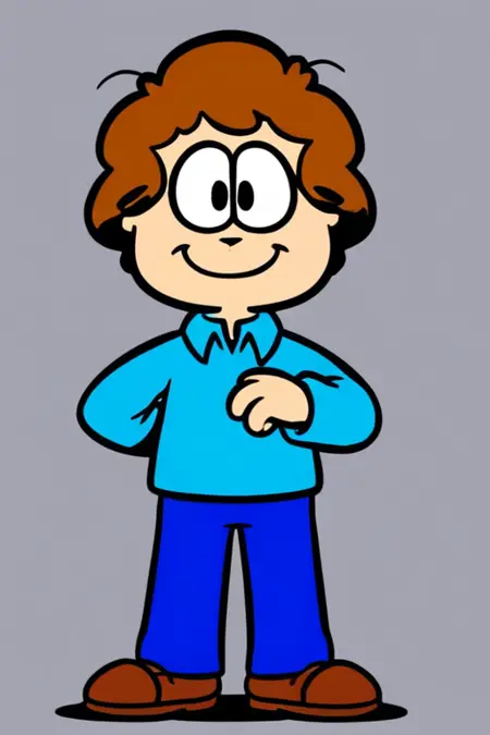 Jon Arbuckle, brown hair, black eyes, blue shirt, brown shoes, blue pants, long sleeves, collared shirt, 1boy, solo
