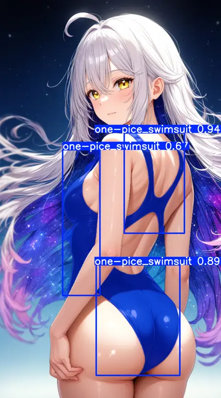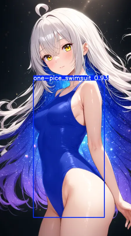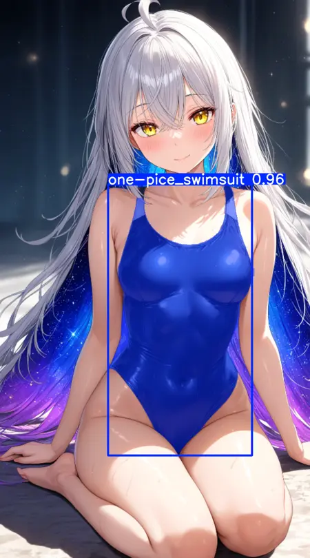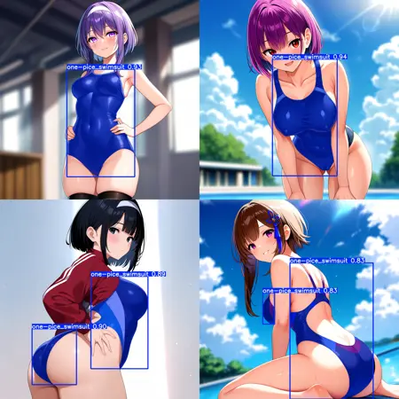 yolo11n-segで学習した、イラストでのワンピース水着(競泳水着)を検出するモデルです。