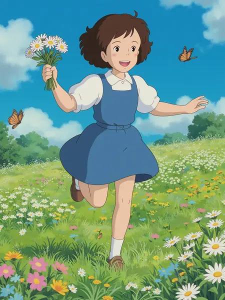 This model is particularly good at generating illustrations in the style of Hayao Miyazaki, but it has not learned character names, so if you want to generate specific characters, you need to combine it with character LoRAs.