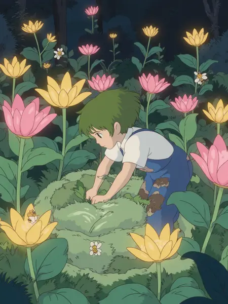 このモデルは、宮崎駿スタイルのイラスト生成に特に優れていますが、キャラクター名は学習していないため、特定のキャラクターを生成したい場合は、キャラクターロラと組み合わせる必要があります。