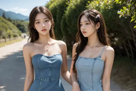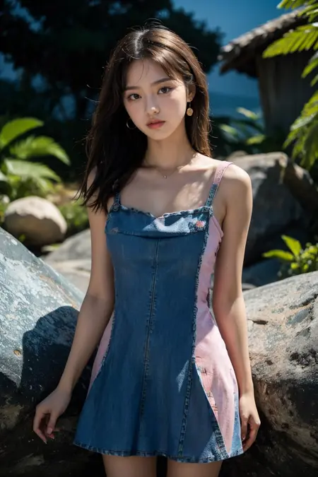<lora:denim dress:0.3:0.7:lbw=Clothes> denim dress