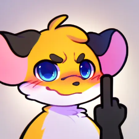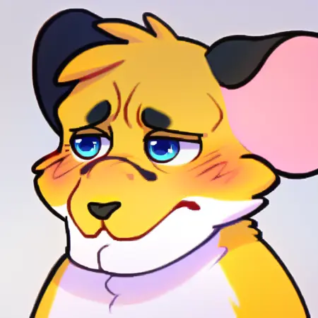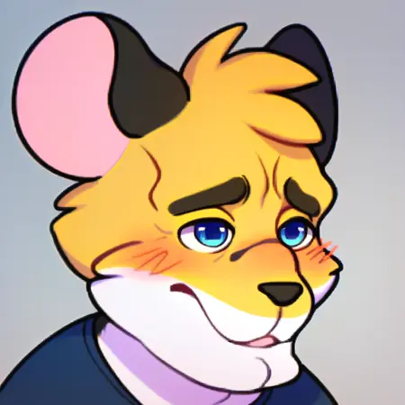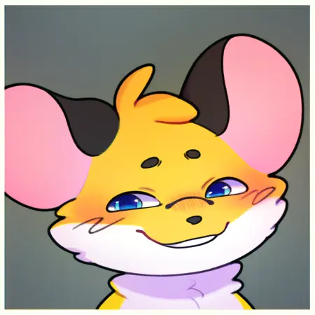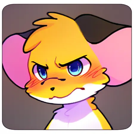 prussian_mouse, mous, mouse, 1boy, furry male, upper body, :3, blush, blue eyes, two-tone fur ,yellow fur