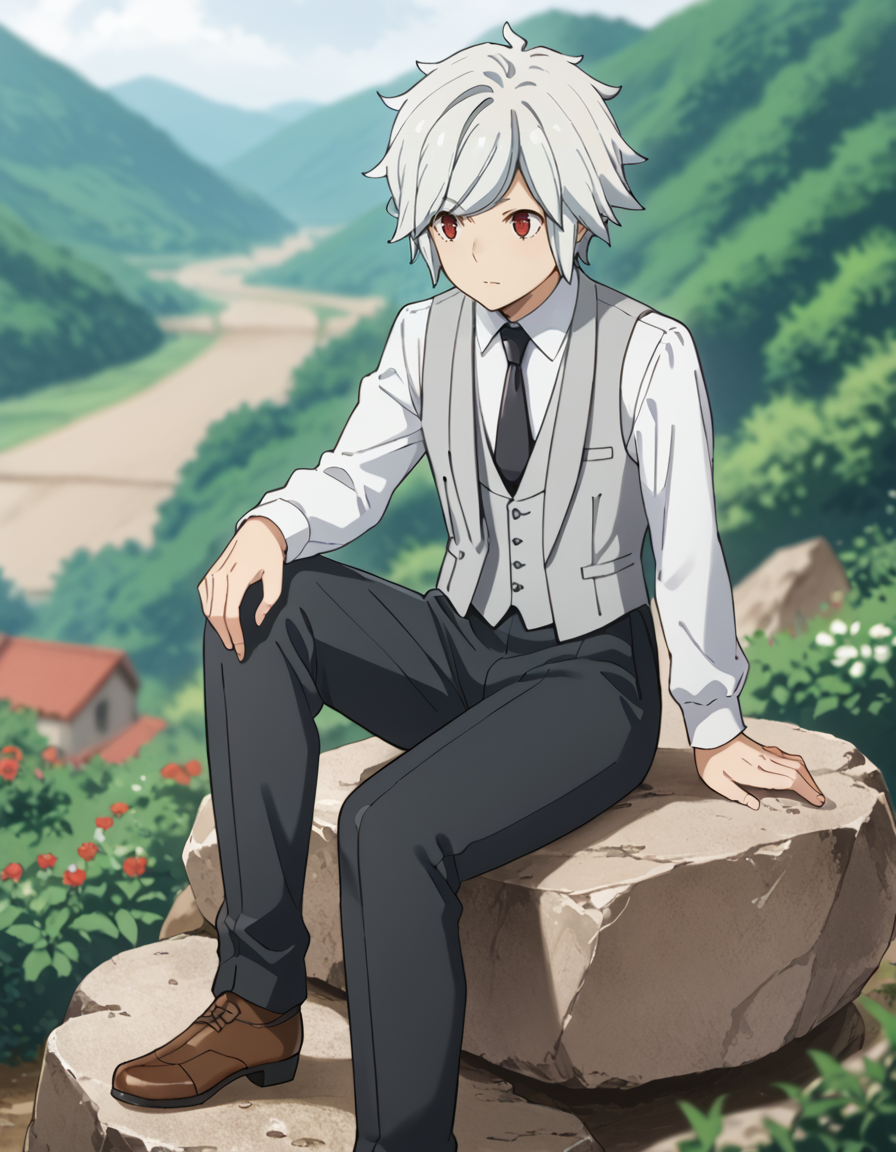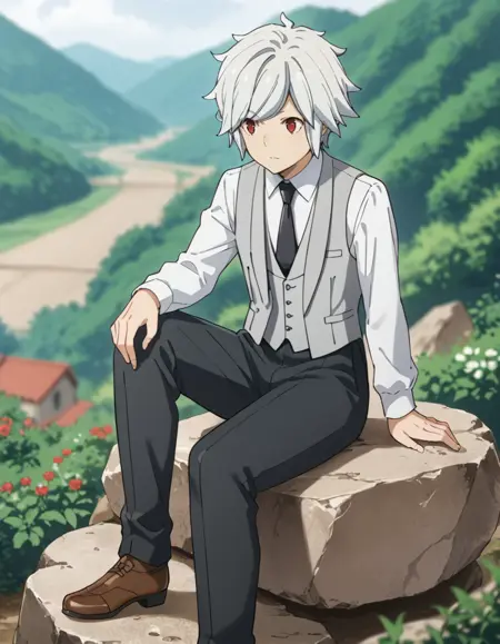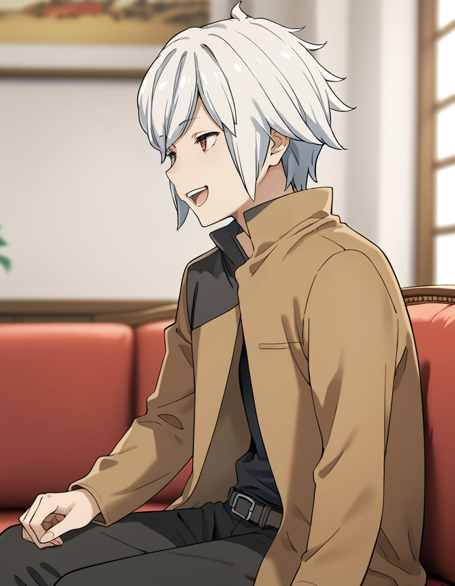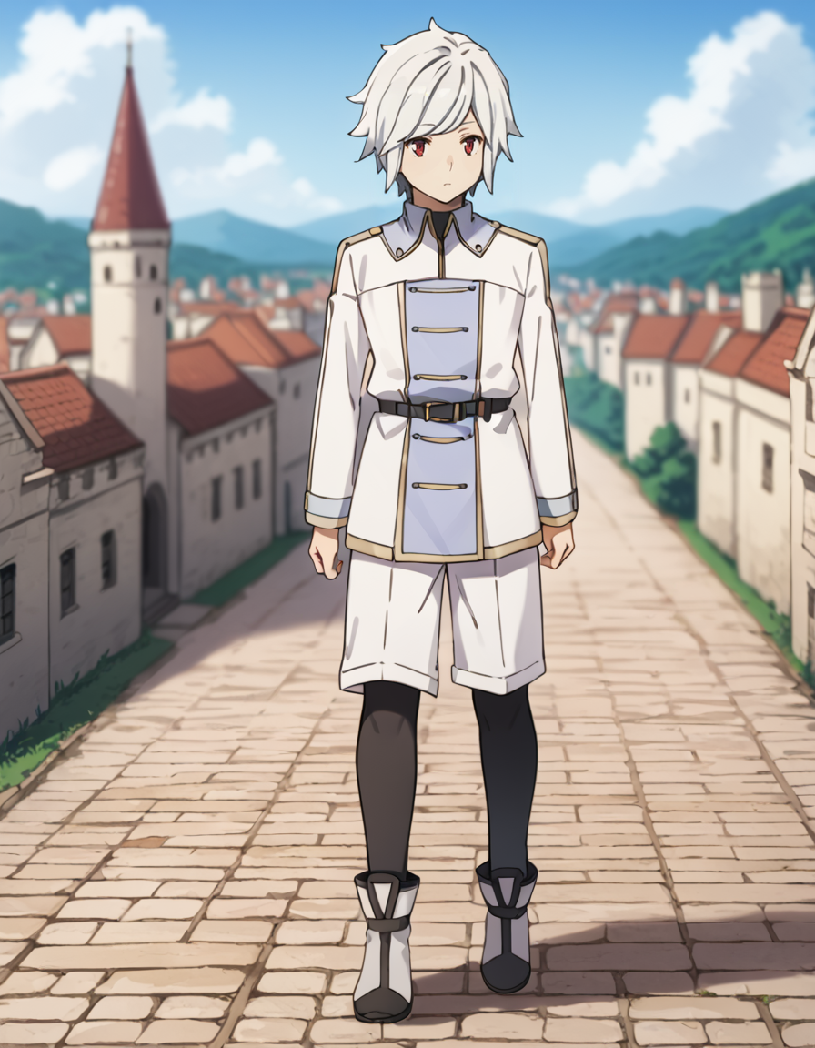 bell cranel, short hair, white hair, spiky hair, red eyes