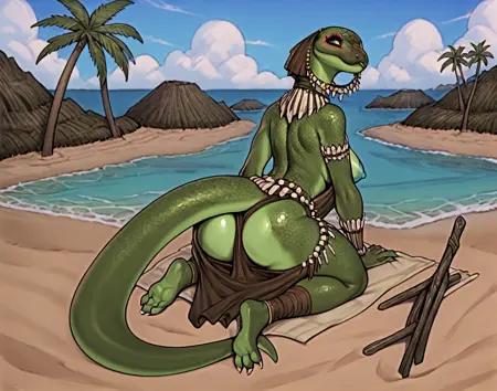 (scales, furry, arongs, tails, reptile, colored sclera, 1girl, solo, breasts, furry female, nipples)