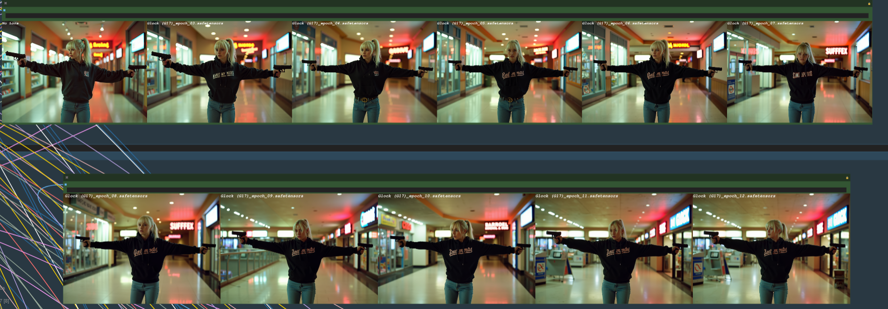 Version 2 (Testing with other LoRas): After I narrow down the first few epochs, I like to test to see how compatible they are with other LoRa's before choosing the one I will publish. I think that is important and I had to manually do it the last time, so I created this workflow that makes it easier to do so. I also figured out a way to easily adjust the amount of Lora's to test, you should be able to get a good idea of how I set it up based on the notes within the workflow, as well as the example screenshots.