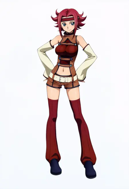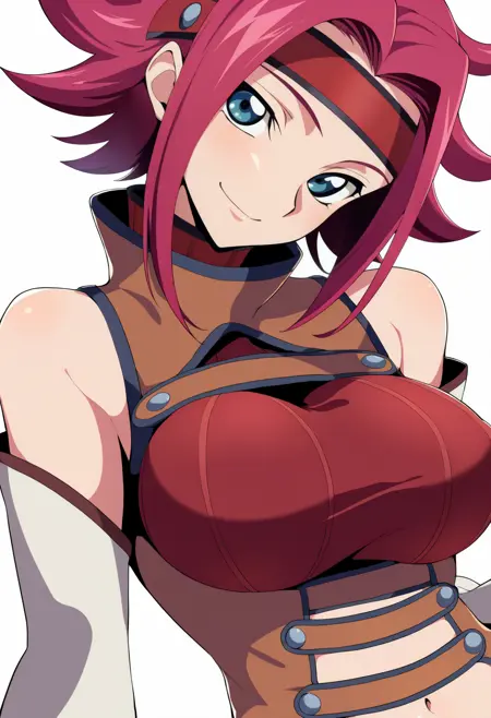 基本プロンプト:1girl, kouzuki kallen, red hair, short hair, blue eyes, flipped hair, headband