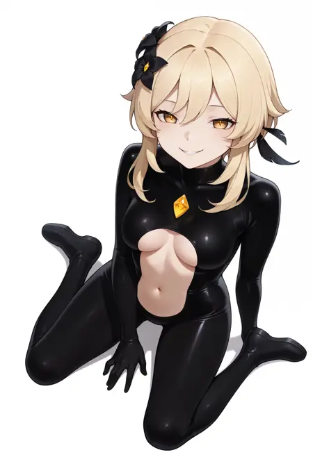 <color> latex作为触发词和上色方式,训练于black latex和white latex。panties,可选搭配pubic tattoo;纹身可用<color> tattoo上色。crop top,可选搭配chest jewel;珠宝可用<color> gemstone上色。bodysuit,可选搭配stomach cutout;此切口也会露出下胸。pasties、maebari、choker带<color> button;按钮目前非可选。visor,可能需要配合covered eyes才能生效;颜色由<color> eyes控制。leotard,可选搭配stomach cutout,与 bodysuit 相同。bodystocking,可与上述服装组合;stomach cutout与bodystocking组合时,会透过切口露出 bodystocking。tiara,其珠宝由<color> gemstone上色。showgirl skirt,可连接至panties或leotard。