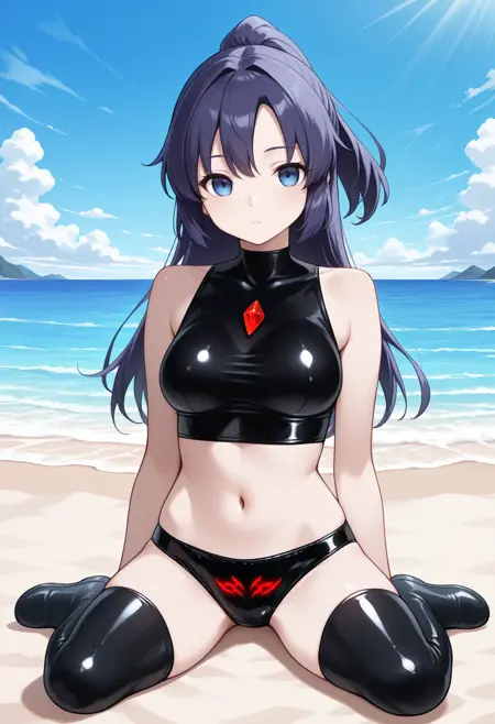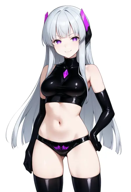 <color> latex: 트리거이자 복장 색상 지정 방법이며,black latex및white latex로 트레이닝되었습니다.panties와 선택적pubic tattoo. 타투는<color> tattoo로 색칠 가능합니다.crop top과 선택적chest jewel. 보석은<color> gemstone으로 색칠 가능합니다.bodysuit과 선택적stomach cutout. 이 컷아웃은 언더부브도 노출합니다.pasties,maebari,choker와<color> button. 현재 버튼은 선택 사항이 아닙니다.visor: 작동하려면covered eyes가 필요할 수 있습니다.<color> eyes로 색칠됩니다.leotard와 선택적stomach cutout, bodysuit과 동일하게.위의 복장과 결합 가능한