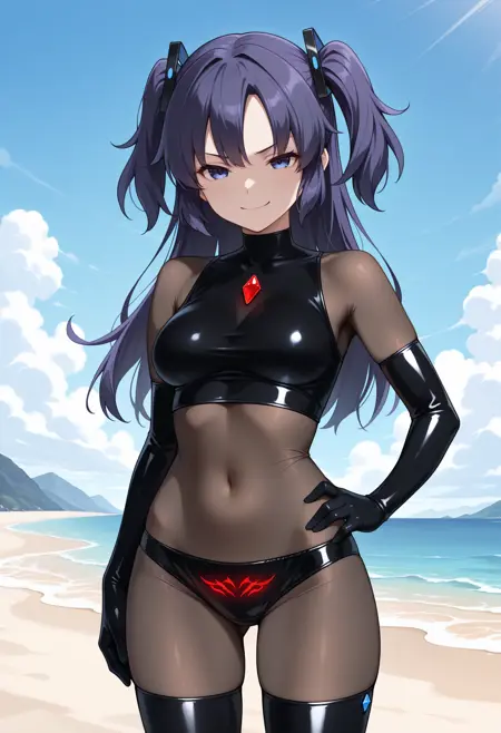 <color> latex: 트리거이자 복장 색상 지정 방법이며,black latex및white latex로 트레이닝되었습니다.panties와 선택적pubic tattoo. 타투는<color> tattoo로 색칠 가능합니다.crop top과 선택적chest jewel. 보석은<color> gemstone으로 색칠 가능합니다.bodysuit과 선택적stomach cutout. 이 컷아웃은 언더부브도 노출합니다.pasties,maebari,choker와<color> button. 현재 버튼은 선택 사항이 아닙니다.visor: 작동하려면covered eyes가 필요할 수 있습니다.<color> eyes로 색칠됩니다.leotard와 선택적stomach cutout, bodysuit과 동일하게.위의 복장과 결합 가능한