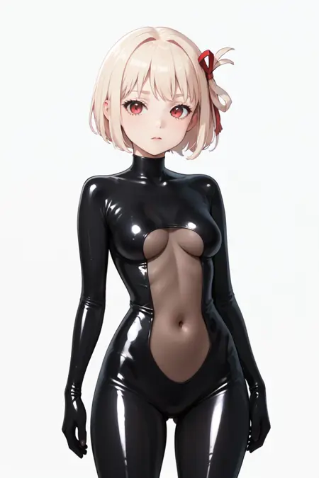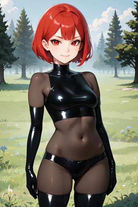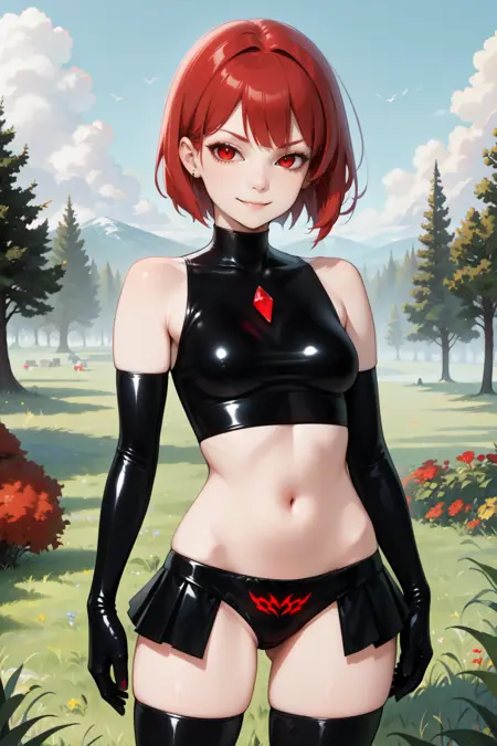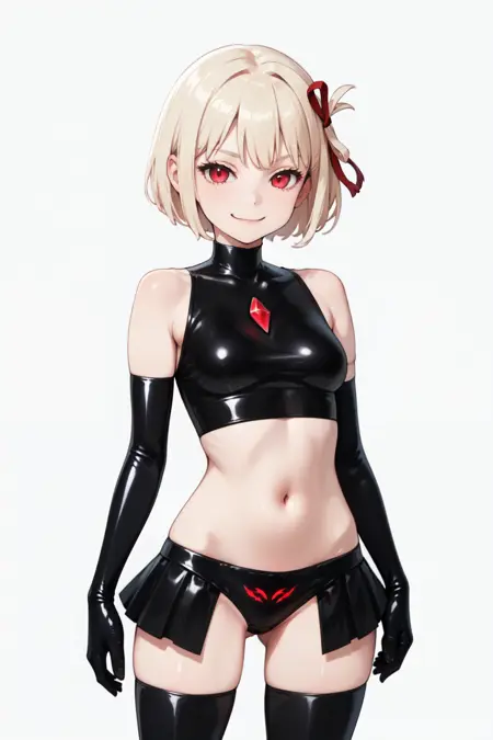 <color> latexas a trigger and a way to color the outfit. Was trained onblack,white,red,blue,green. Mostlyblack.panties,miniskirt,showgirl skirt,maebari.crop top,pasties,strapless leotard,sleeveless leotard,bodysuit,bikini,strapless dress,sleeveless dress,visor,tiara,Some tops can be combined with