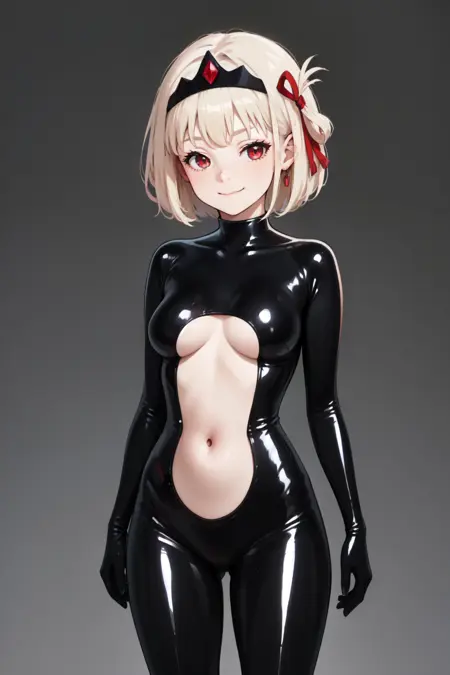 <color> latexas a trigger and a way to color the outfit. Was trained onblack latexandwhite latex,pantieswith optionalpubic tattoo. Tattoo can be colored with<color> tattoo,crop topwith optionalchest jewel. The jewel can be colored with<color> gemstone,bodysuitwith optionalstomach cutout. This cutout exposes underboob too.pasties,maebari,chokerwith<color> button. The button is not optional atm.visor, might requirecovered eyesto work. Is colored by<color> eyes,leotardwith optionalstomach cutout, like in the bodysuit.bodystockingthat can be combined with outfits above.stomach cutoutcombined withbodystockingwill expose the bodystocking through the cutout.tiarawith a jewel colored by<color> gemstone.showgirl skirtthat can be attached topantiesorleotard.
