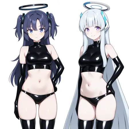 <color> latex作为触发词和上色方式,训练于black latex和white latex。panties,可选搭配pubic tattoo;纹身可用<color> tattoo上色。crop top,可选搭配chest jewel;珠宝可用<color> gemstone上色。bodysuit,可选搭配stomach cutout;此切口也会露出下胸。pasties、maebari、choker带<color> button;按钮目前非可选。visor,可能需要配合covered eyes才能生效;颜色由<color> eyes控制。leotard,可选搭配stomach cutout,与 bodysuit 相同。bodystocking,可与上述服装组合;stomach cutout与bodystocking组合时,会透过切口露出 bodystocking。tiara,其珠宝由<color> gemstone上色。showgirl skirt,可连接至panties或leotard。