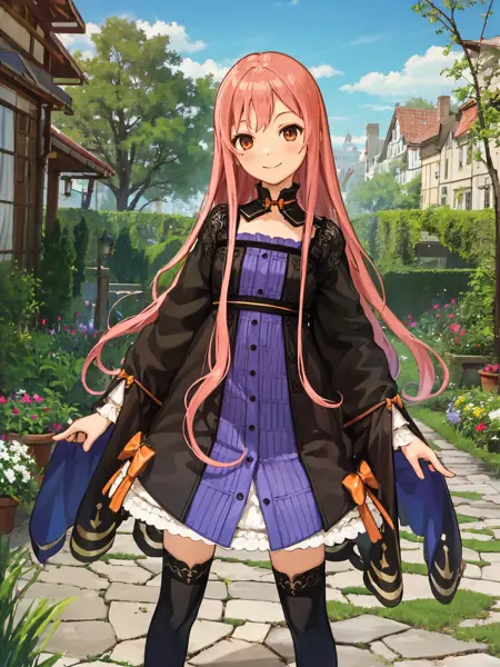 wilbell_a14_lh, brown eyes, pink hair, sidelocks, long hair, wavy hair