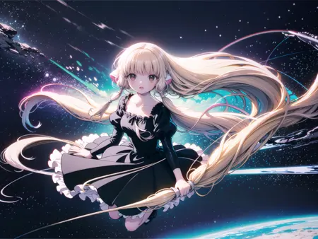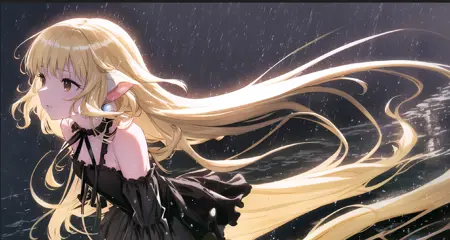 긍정적: 1girl, Chii, 로봇 귀, 헤어 튜브, 금발 머리, 긴 머리