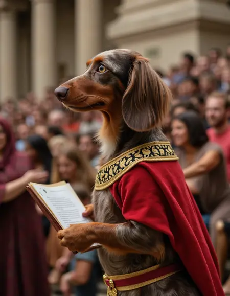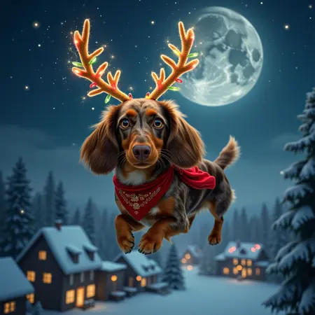 今、ルウのさまざまな側面——遊び心あふれる精神、深みのあるまなざし、果てしない好奇心——を捉えることができます。あなたが想像するルウの姿を描いてください:高貴なダックスフンドのヒーロー、かっこいいダックスフンドの探偵、あるいはたった一本の尻尾のふりで心を奪う、愛らしいルウ。彼の世界は、広がる準備ができています。あなたの犬の冒険は、どこへあなたを連れて行くでしょうか?