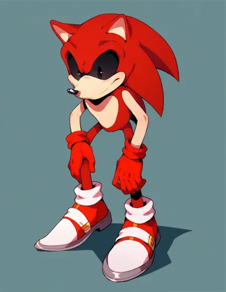 FurusoEXE, gloves, 1boy, animal ears, red hair, shoes, red gloves, red footwear, furry, furry male, body fur, red theme, animal nose, red fur. sonic the hedgehog, black sclera, colored sclera, hollow eyes, red skin, red cuffs