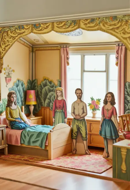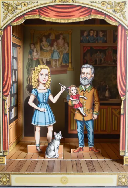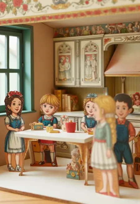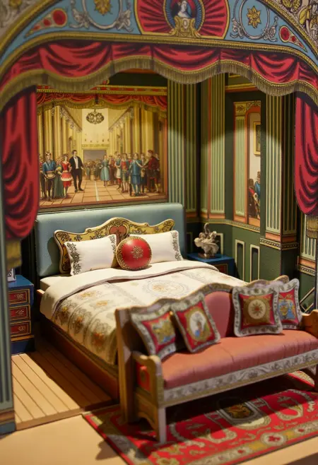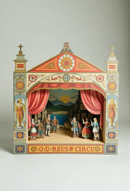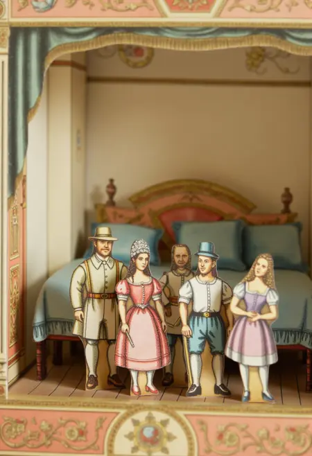 这种风格在维多利亚时代的家庭中作为一种家庭娱乐形式流行,家庭成员可以使用可剪下并组装的印刷纸张进行微型戏剧表演。对建筑细节和华丽装饰的重视,是维多利亚时代审美偏好的典型特征。