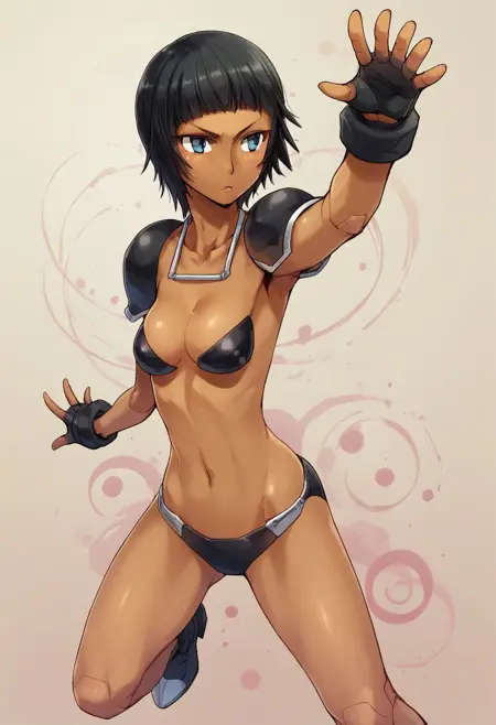 标签 > 1个女孩,女战士,黑发,短发,肩甲,比基尼,深色皮肤,深肤色女性