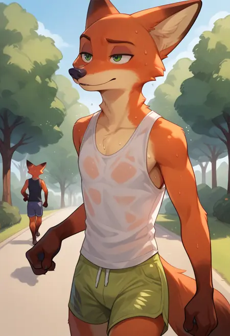 強化タグ: アンスロ、オレンジ色の毛、緑色の目