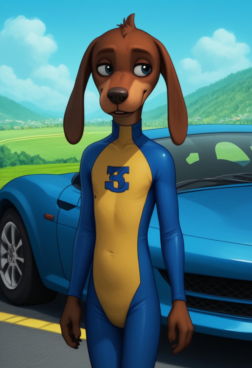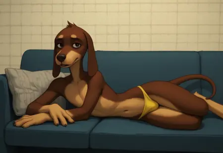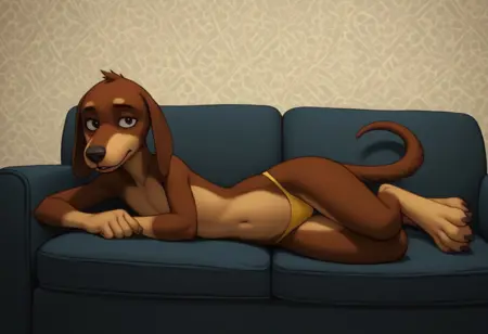 신체: 갈색 털, 강아지, 긴 처진 귀, 닥스훈트
