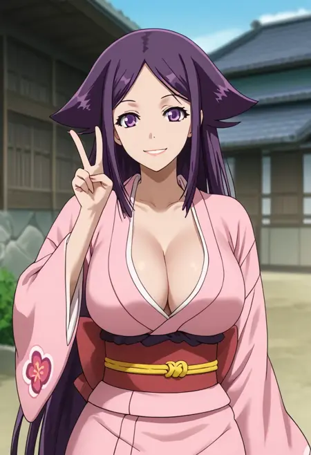 Oharu, long hair, purple hair, purple eyes, very long hair, breasts, large breasts,