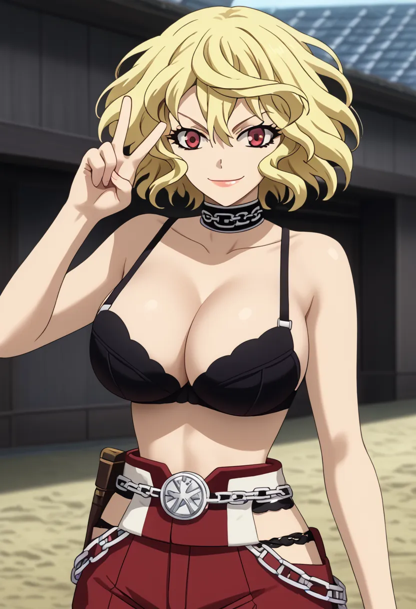 Mitsuki, blonde hair, short hair, red eyes, large breasts,