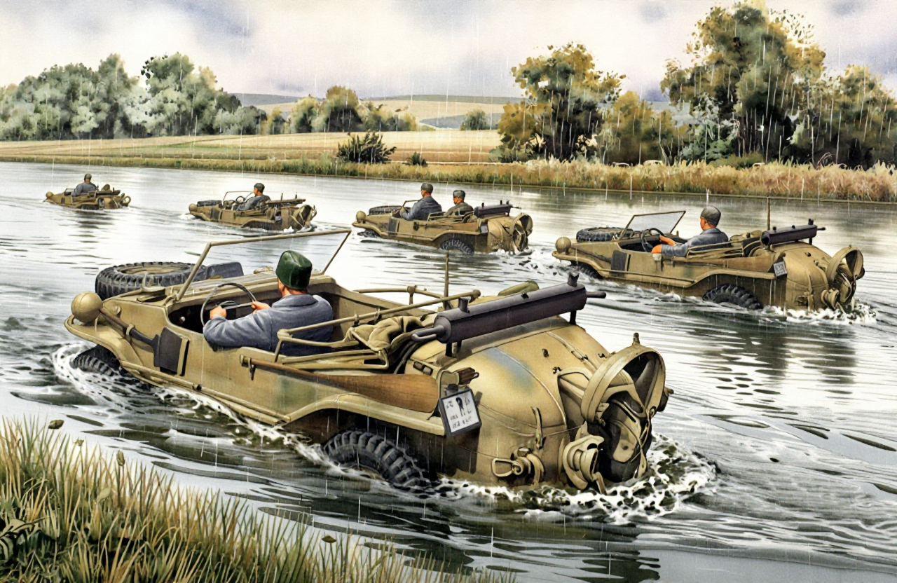 第二次世界大戦中のドイツ軍の水陸両用車両で、ポルシェ博士が開発しました。