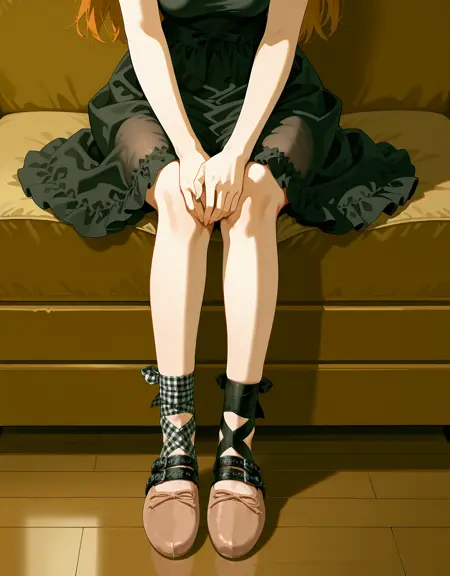 (バレエシューズ:0.8)、フラットシューズ、リボン脚、肌の凹み、メタリヌ、リボン、くるぶしリボン、(チェックリボン:0.7)、(黒リボン:0.7)、