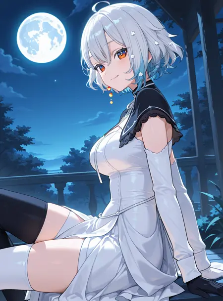 white dress, capelet, asymmetrical gloves,靴下/袜子/Thighhighs: