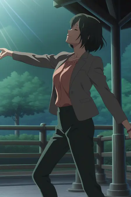 除非降低LoRA的强度,否则她的面部总会有一道阴影。这是无法修改的,因为这是《言叶之庭》独有的艺术风格所致。