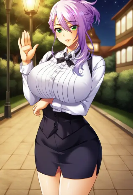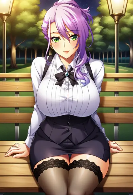 1 裙子,白衬衫,蕾丝边裤袜,长袖,铅笔裙