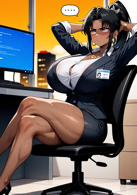 "dark skin,abs,black hair,orange eyes, ponytail,"